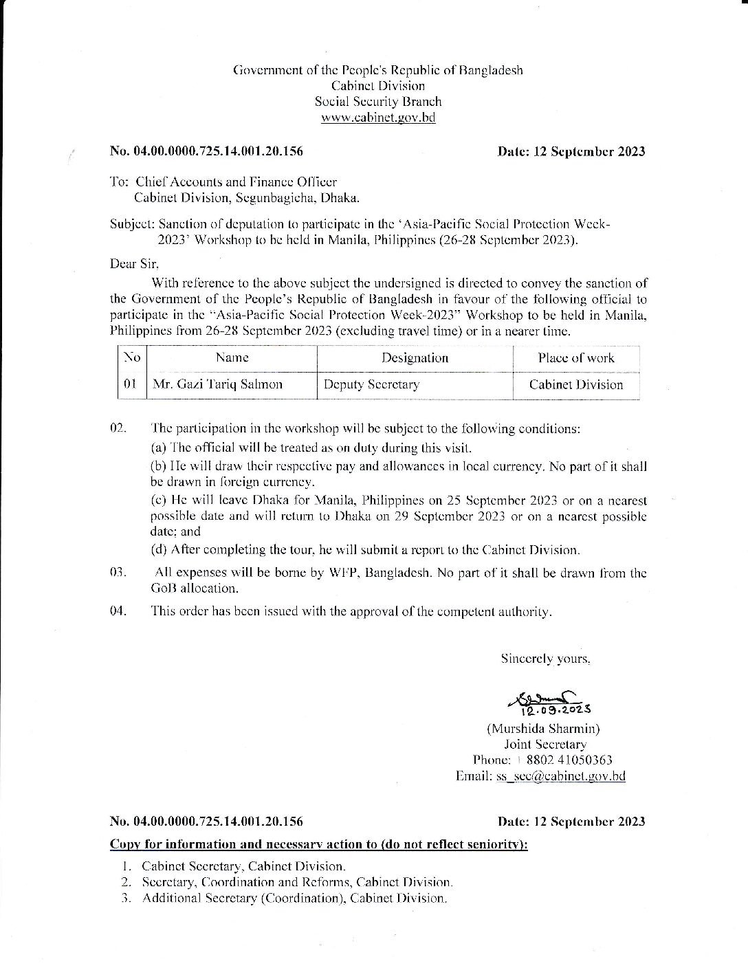 Subjcct: Sanclion of clcputation to participatc in thc’Asia-Pacillc Social l)rotcction Wcck2023′ Workshop 1o bc hcld in Manila. I’}hilippincs (26-28 Scptcmbcr 2023).